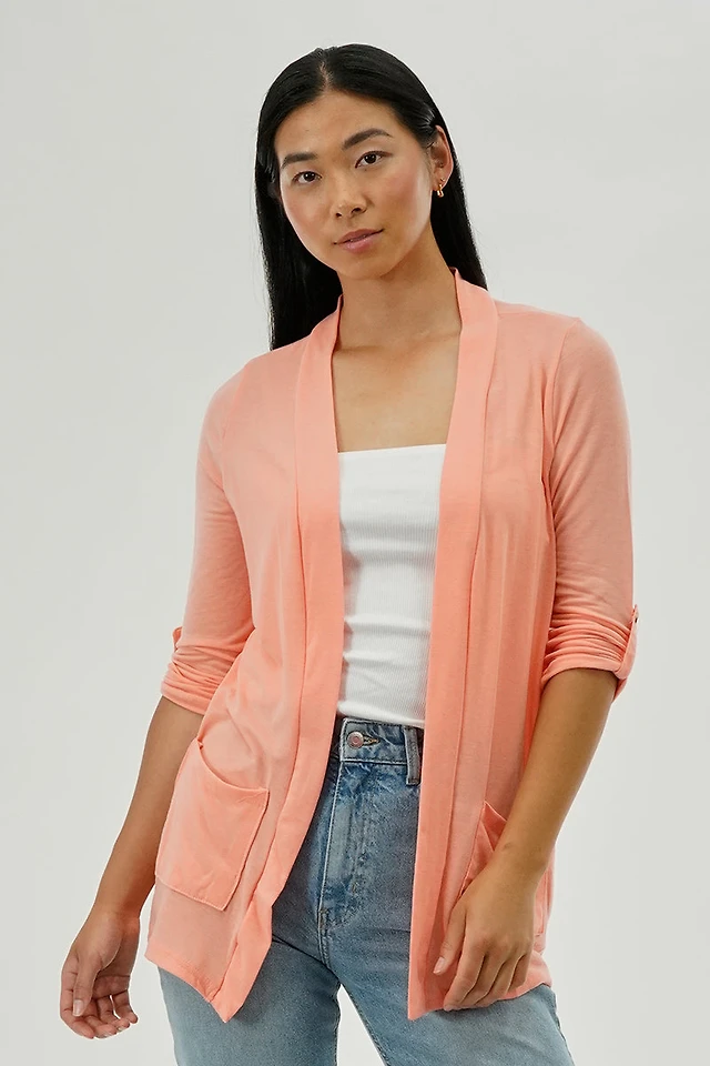 Fahrenheit Lightweight Wrap Cardigan - Peach