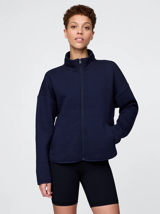 GapFit Quilted Jacquard Knit Funnel-Neck Pullover