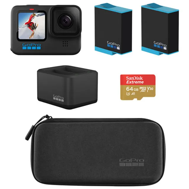 GoPro HERO10 Black Waterproof 5.3K Sports & Helmet Camera w/ Dual Battery Charger, Battery Packs, Memory Card & Case
