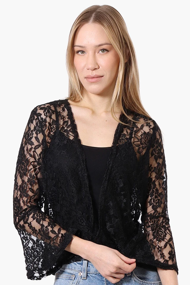 Impress Lace 3/4 Sleeve Open Cardigan - White