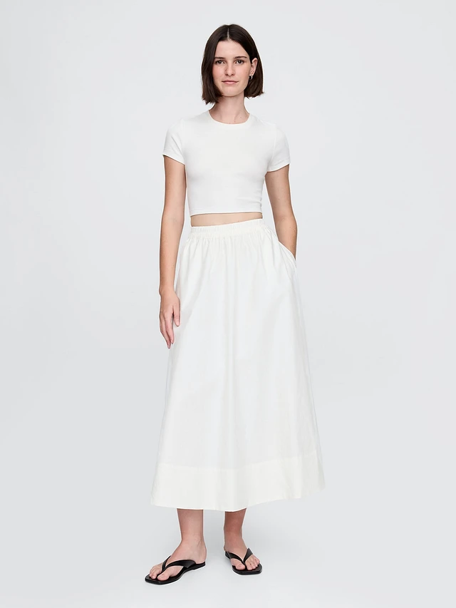 Cotton Poplin Smocked-Waist Maxi Skirt