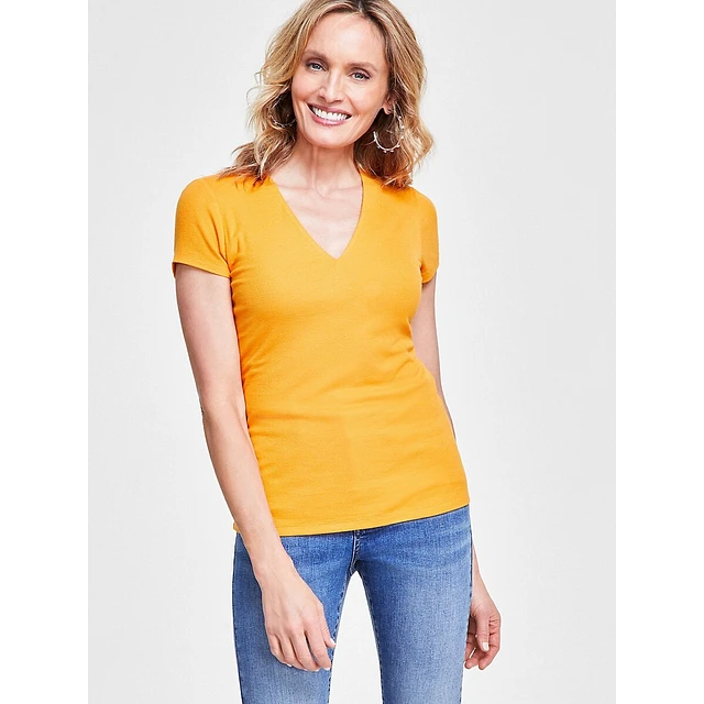 Ribbed V-Neck Cap Sleeve T-Shirt