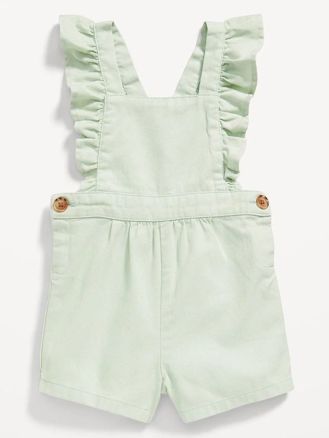Ruffle-Trim Twill Shortalls for Baby