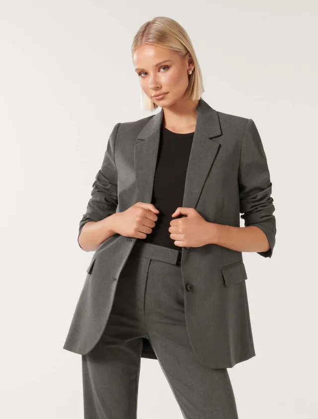 Herringbone Wool-Blend Oversized One-Button Blazer