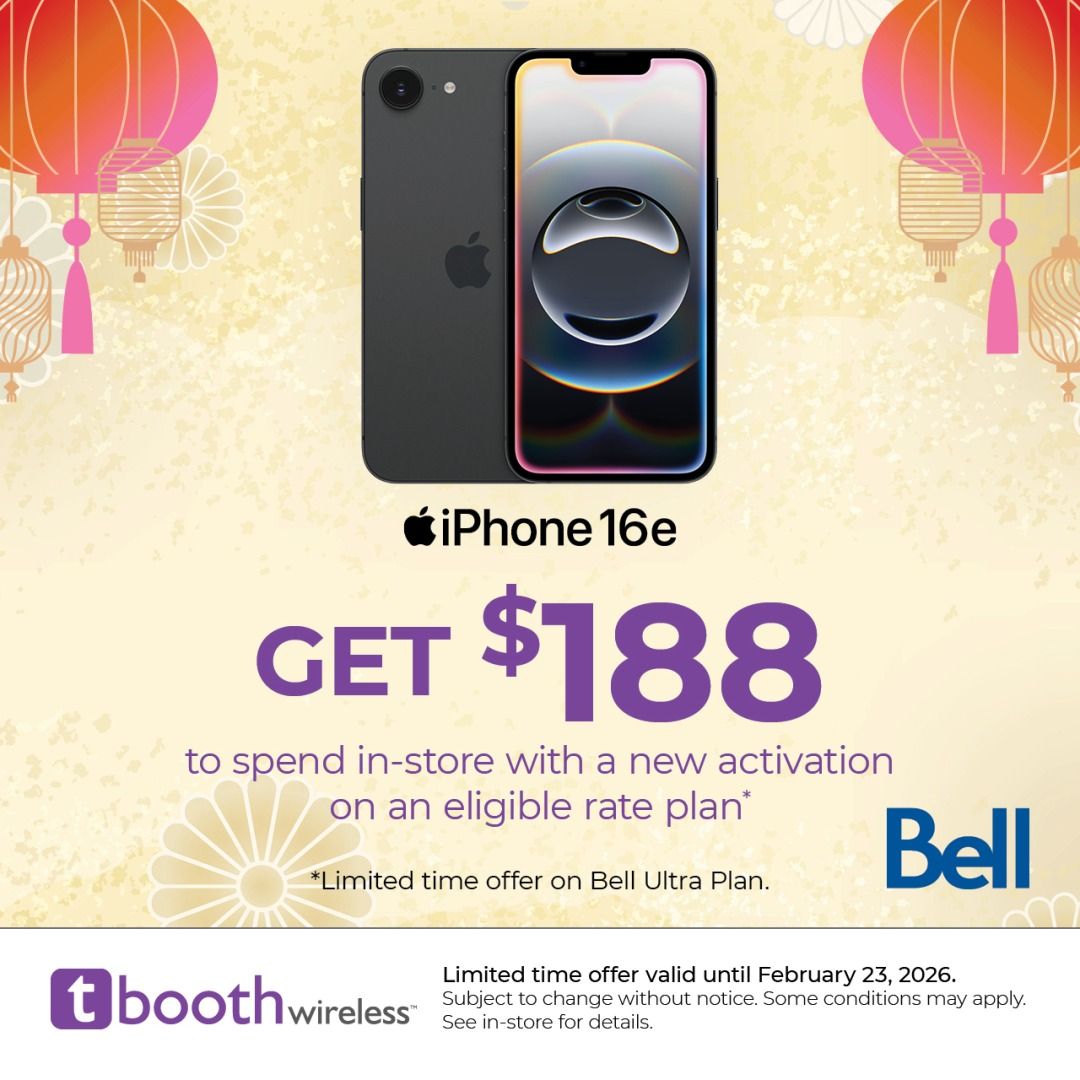 Get $188 to spend in-store with a new activation on an eligible rate plan* *Limited time offer on Bell Ultra Plan. Subject to change without notice. See in-store for details.