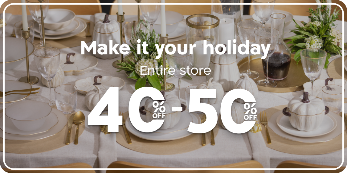 2025-11-12 - 2025-12-01Visit our store to take advantage of amazing deals with 50% to 70% off the entire store. Elevate your home with exceptional value on everything you need to host, gift or celebrate the holidays in style. Shop early for the season’s best savings.