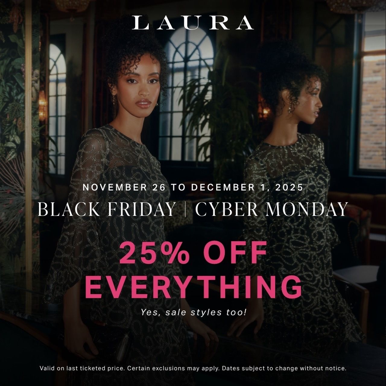 2025-11-27 - 2025-12-0125% off EVERYTHING!!! Yes, sale styles too! Valid on last ticketed price. Certain exclusions may apply. Dates subject to change without notice.
