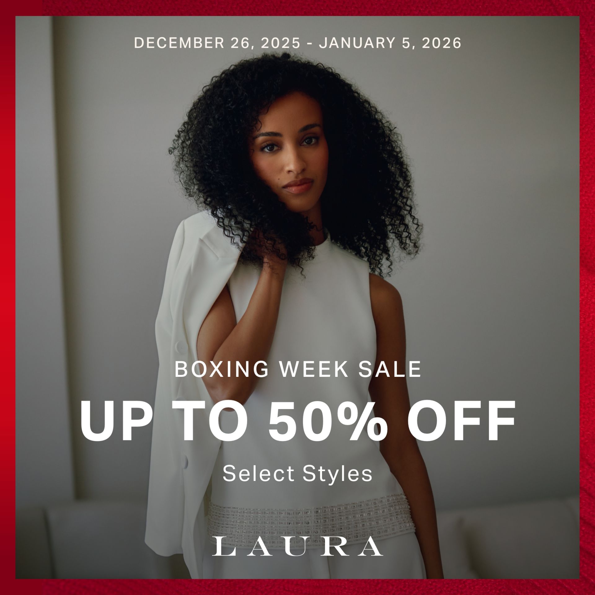 2025-12-26 - 2025-12-31Boxing Week Sale up to 50% off Select Styles